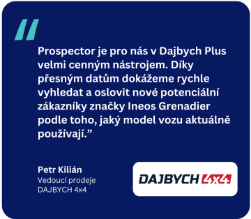 Prodáváte auta či související služby firmám na českém trhu? Pak nepochybně víte, jak cenná jsou data a informace o firemních fleetech. Jak by se vám líbilo na jednom místě a za pár vteřin vidět, zda ta či ona firma ve vašem regionu nakupuje výhradně nová, nebo ojetá auta? O kolik úspěšnější bude vaše nabídka či obchodní jednání, když k této znalosti přidáte i přehled značek, které daná firma používá? A věděli jste, že díky našim datům můžete zjistit, kdy je nejvhodnější kontaktovat danou firmu?