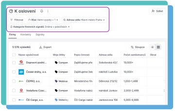 Na trhu je tisíce firem - a ne všechny firmy mají zájem o finanční služby. BizMachine pomáhá zaměřit obchodní kapacity tam, kde je nejvyšší pravděpodobnost úspěchu. Ať už jde o střední firmy s růstovým potenciálem, podniky v určitém regionu nebo segmenty s vyšší potřebou financování, díky přesné segmentaci a skórování víte, kde se soustředit – a kde naopak zbytečně neztrácet čas.