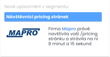 Objevujte, kvalifikujte a prioritizujte firmy, které se zajímají o vaše služby a produkty. Díky automatizovaným upozornění budete o každém zajímavém leadu vědět hned, jakmile přijde na váš web.